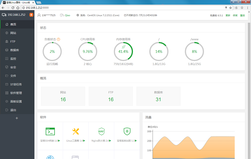 通过web界面就可以轻松管理安装所用的服务器软件,还有扩展插件。